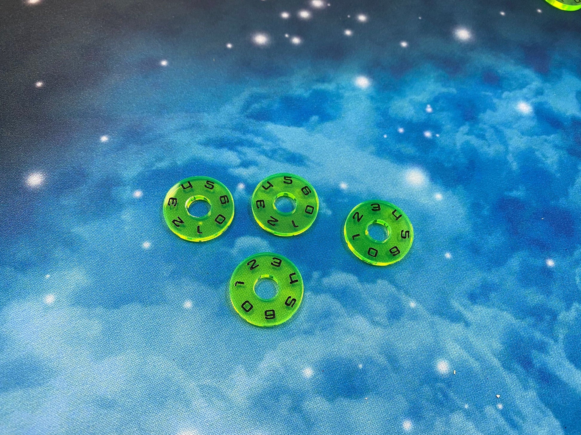 This is a set of (4) custom shield dials, 3mm thick. Same dimensions as the cardboard punch-out. Fits with the plastic pin included with each expansion, just remove the cardboard shield and install these.